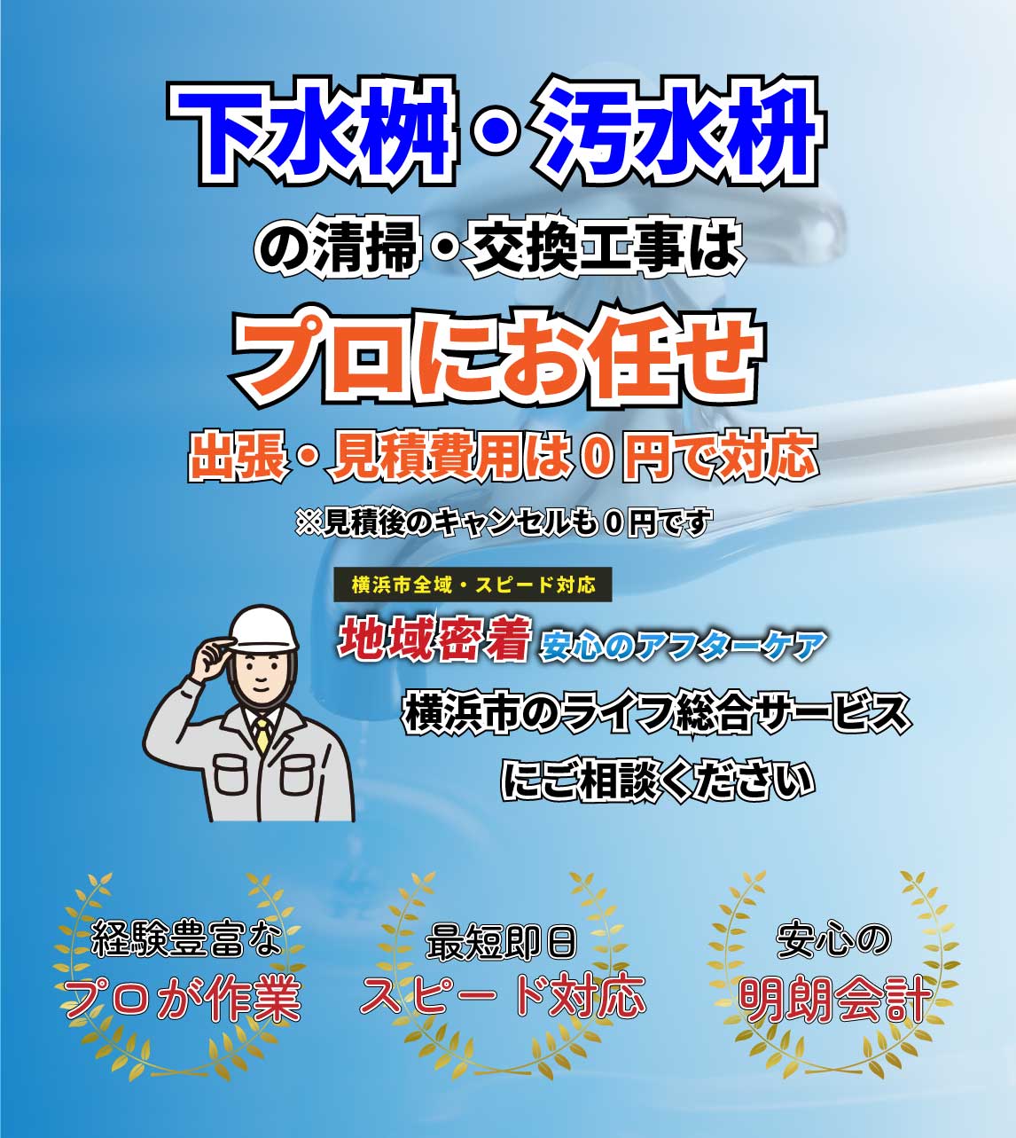 汚水桝や排水管の詰まりや容量不足が原因です。高圧洗浄や異物除去を行い、必要に応じて桝の拡張や排水環境の改善工事を実施します。